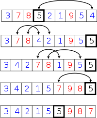 // Partition for (E i : arr) { if (i.compareTo(pivot) < 0) { less.add(i); } elseif (i.compareTo(pivot) > 0) { more.add(i); } else { pivotList.add(i); } }
